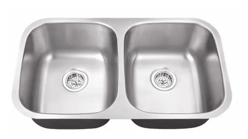 50/50 Stainless Steel Traditional Kitchen Sink 304 Surgical Grade Steel | Limited Lifetime Warranty Undermount, Rounded Corners | Overall size 32 ¼” x 18 ½” x 9″