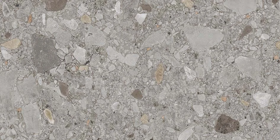 Roca Tile Usa | Glazed Porcelain Collection: Unique Ground | Sizes 24″X48″ R & 12″X36″ Ceppo Di Gre” | Large Pebbles And Mineral Sediments
